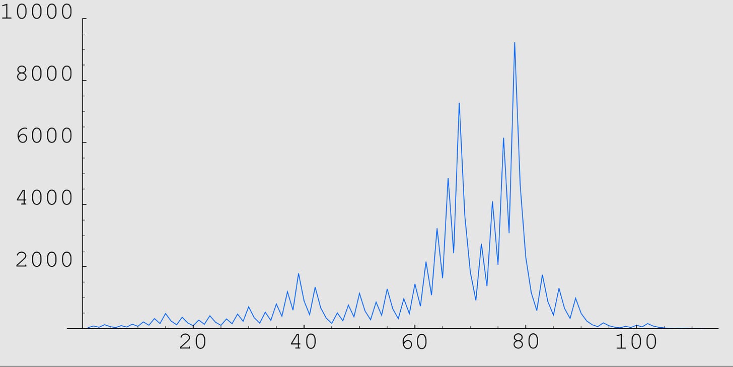 Does anything about that structure look “random” to you? It sure didn’t to me. More recently I came across this graph, which does a pretty good job of revealing the ICM distributional structure as the generational levels increase:
